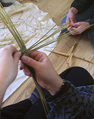 15 years ago, my children, grandmother and I made a basket from paper bags. I still have this basket; it has survived floods, toddlers, and blizzards. I was going through our house, looking for baskets for our upcoming Waldorf home school day. I realized that this paper bag basket would be a great basket to grow wheat grass in. It would also be an appropriate Brigid activity because of the weaving.