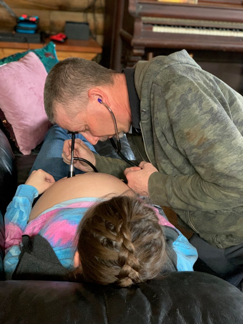 At about 24 weeks we had a Dr.s appointment and for the first time I had questions for my Doctor. I could hear her making small talk at the nurse’s station while we sat and waited and waited and waited. Then she came in and after about 10 minutes and was ready to leave. My husband and I started asking questions and she kept walking toward the door half ass answering everything. I told her I wanted to try a natural birth and she said “we’ll just see how it goes.” Chances were that she wouldn’t be catching our baby anyway, it’s whoever is on call. A total stranger.