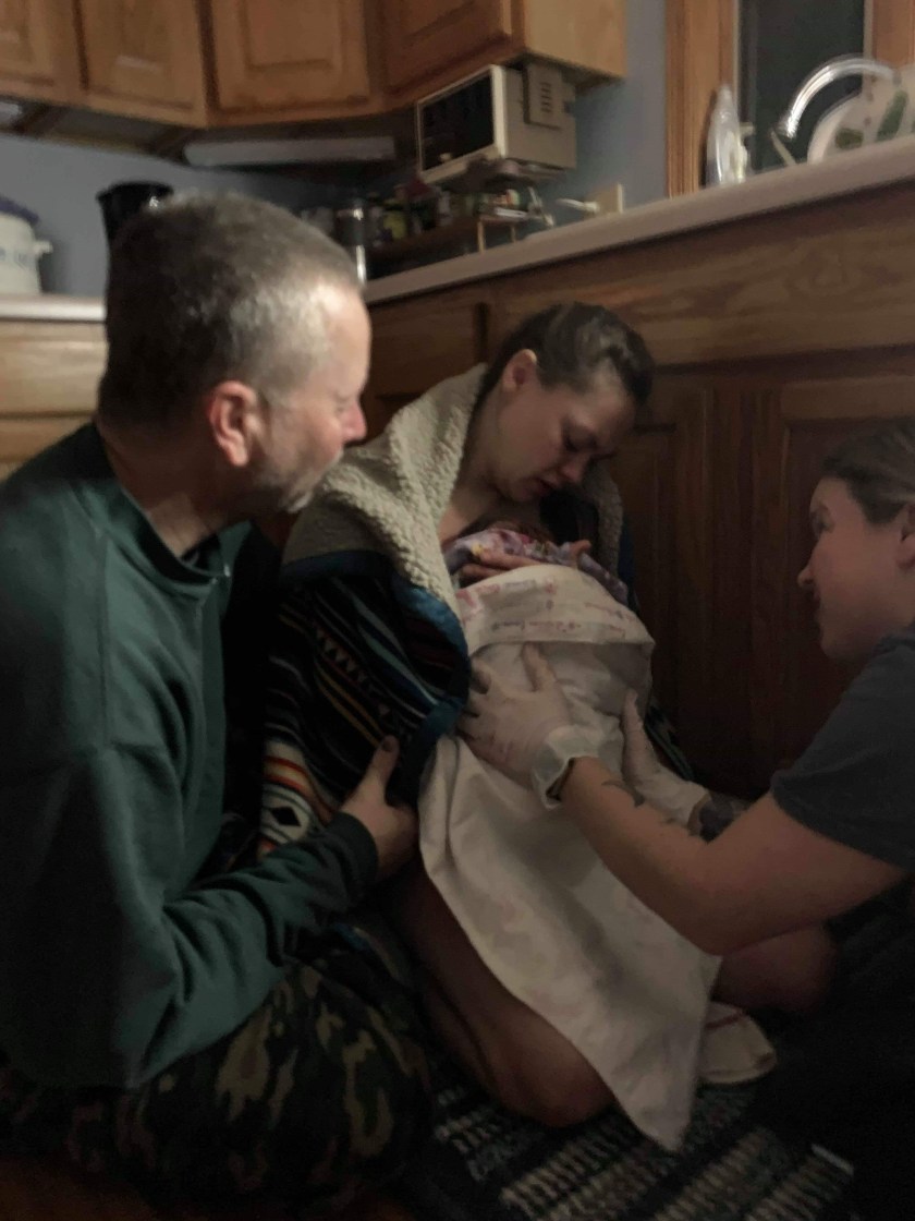 Lacey was born at 3:40am on March 27. Nobody in our families knew we were doing a home birth. I had sent my husband’s mother a message asking if she could come over at about 10am and help me with a few things and when she arrived she seen we had had our baby. I’ve never seen a look of more surprised and confusion in my life but it was wonderful. We told her we had the baby early that morning at home with 2 midwives and she was completely overjoyed that everyone was safe and happy to meet our newest addition.